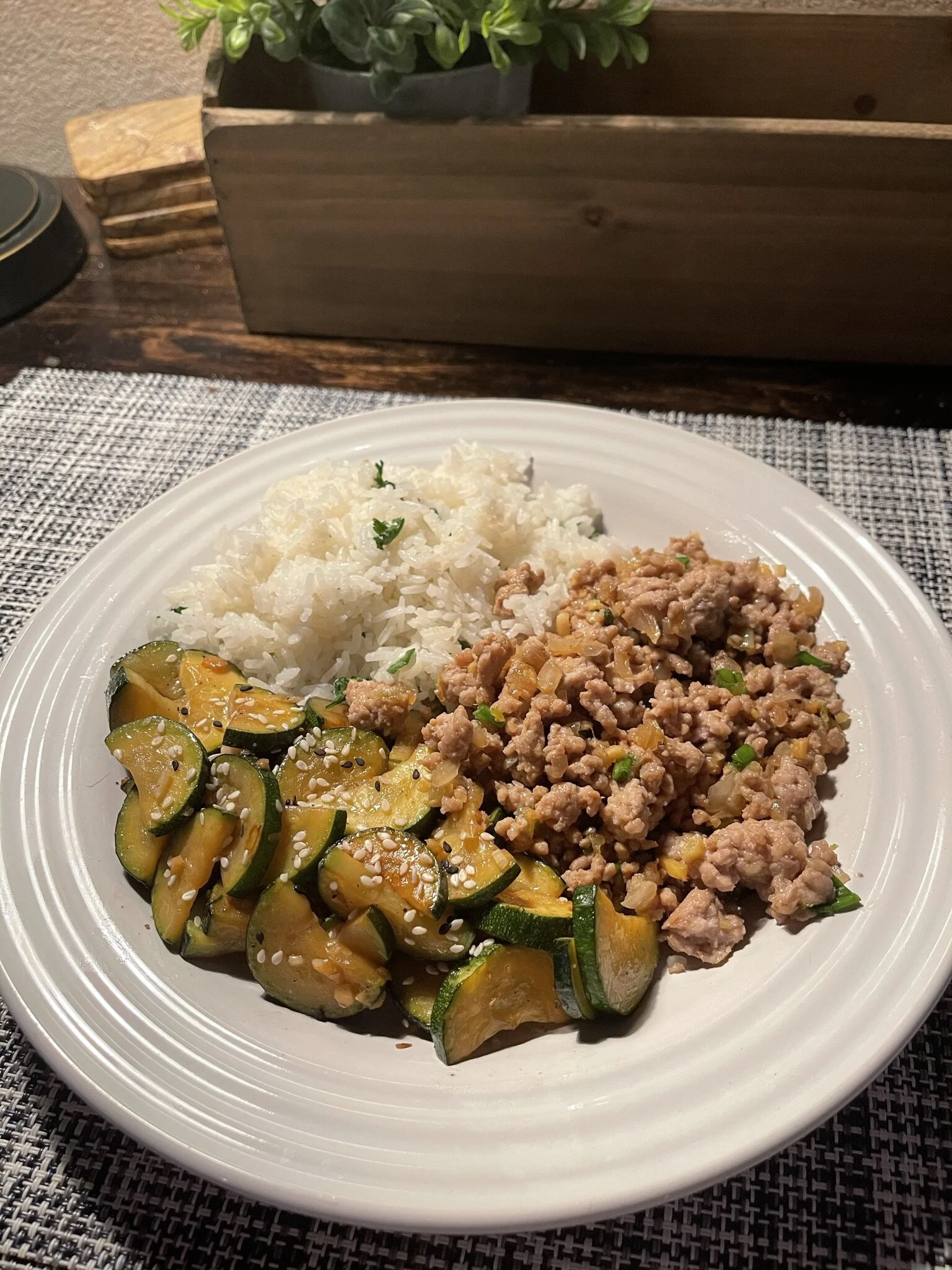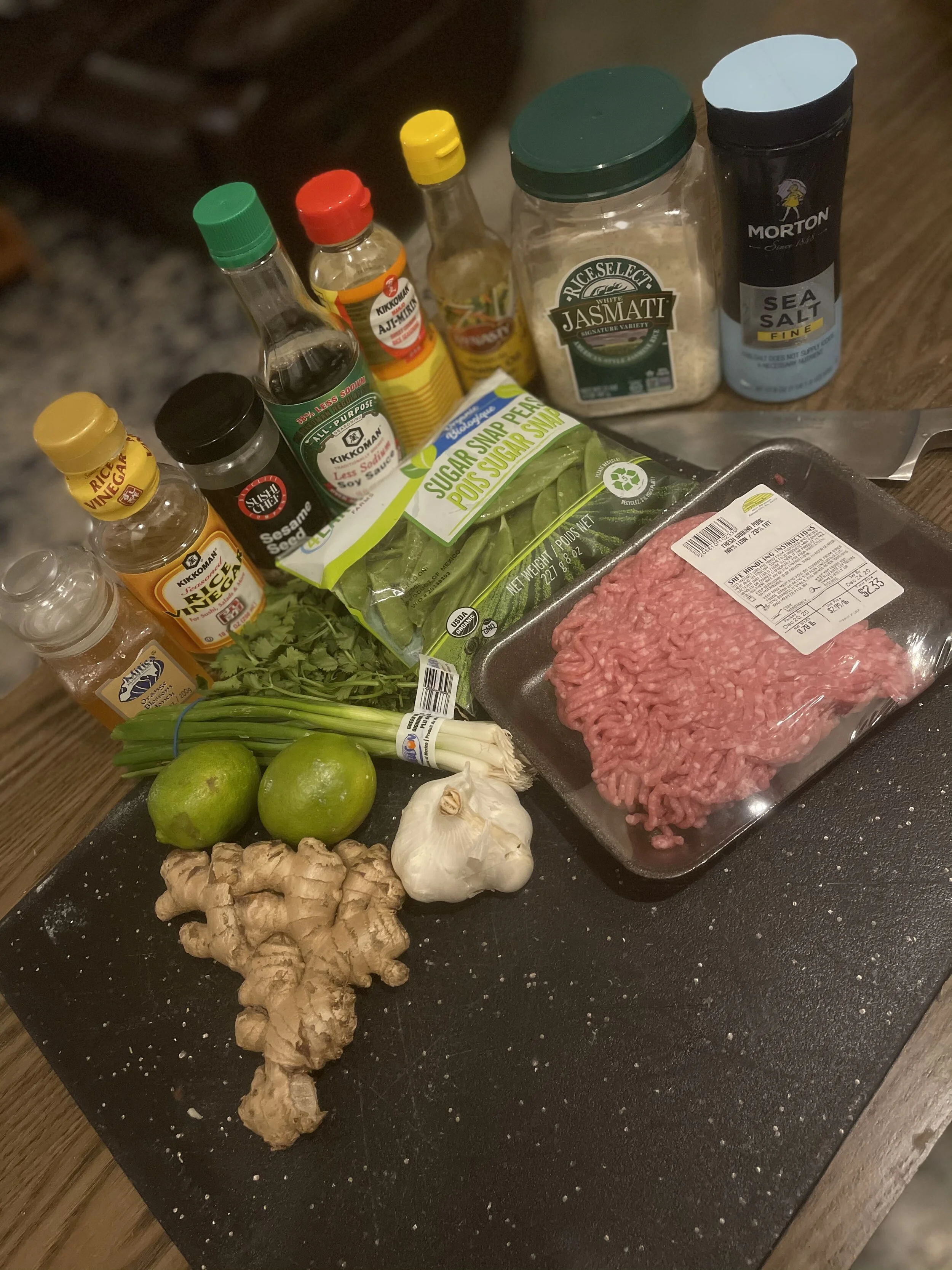 I recently became a huge fan of ground pork! One of the most overlooked options at your local butcher. Of course, I use it when making my Italian meatballs and bolognese, but it is this fragrant and delicious Asian inspired preparation that I’ve fallen in love with! The key to the whole dish is the fresh ginger. I like to buy a nice big hand of ginger at a time. It makes all the difference in Asian dishes. When ginger is paired with garlic your dishes become vibrant and aromatic. I will dice up some scallions with the ground pork in a sauté pan over medium heat. I’ll add some soy, mirin, rice wine vinegar, lime juice and garlic and lots of ginger. Let it all cook down and your kitchen will smell like you’re watching through the streets of Seoul!. I love to pair this dish with my cilantro lime rice and some sautéed zucchini or snap peas.